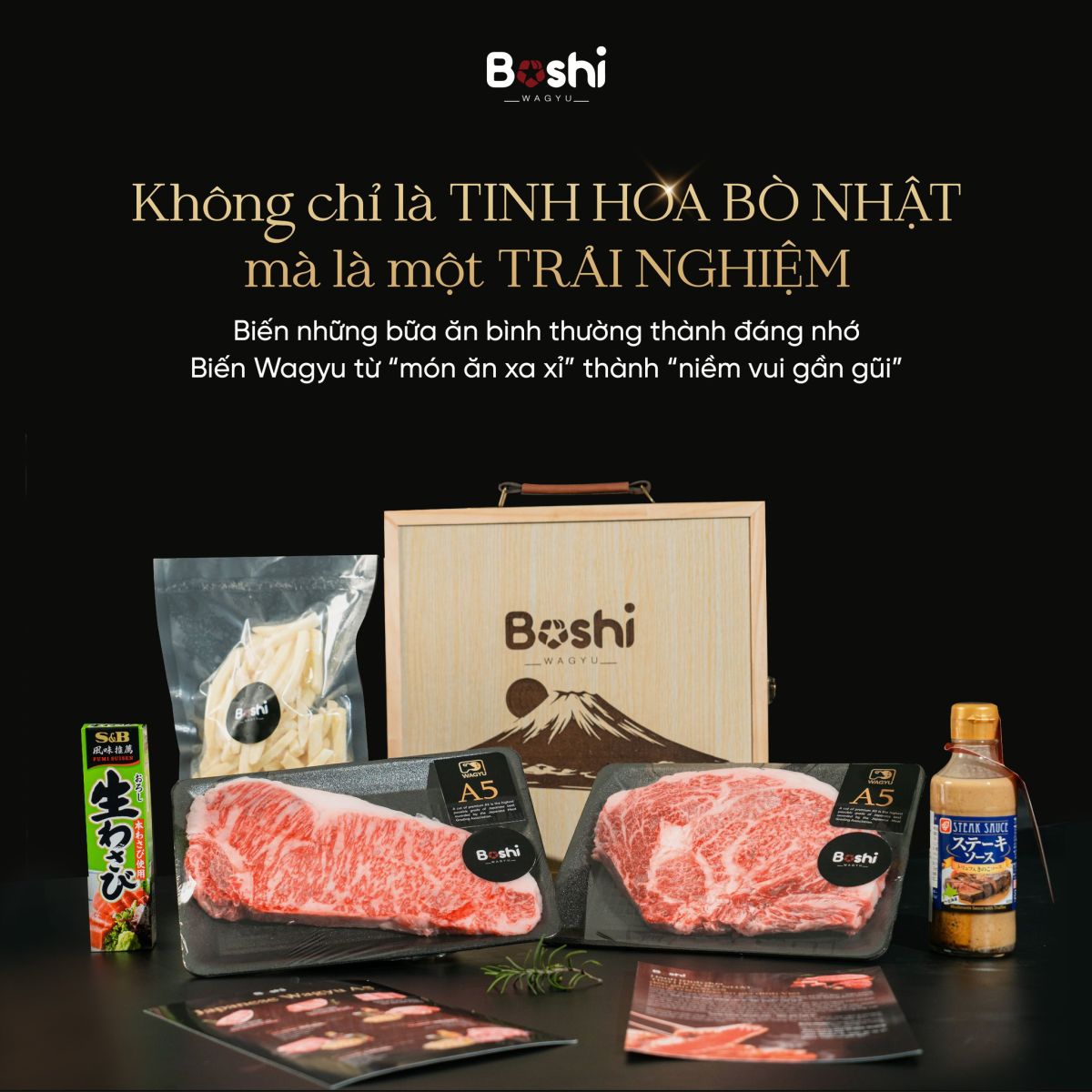 Tại BOSHI, chúng mình không chỉ bán thịt bò, chúng mình mang đến giải pháp cho những khoảnh khắc vô giá. Dòng bò Wagyu A5 (BMS 8-12) được tuyển chọn trực tiếp là lời cam kết về sự am tường và trân trọng đối với mỗi khch hàng.